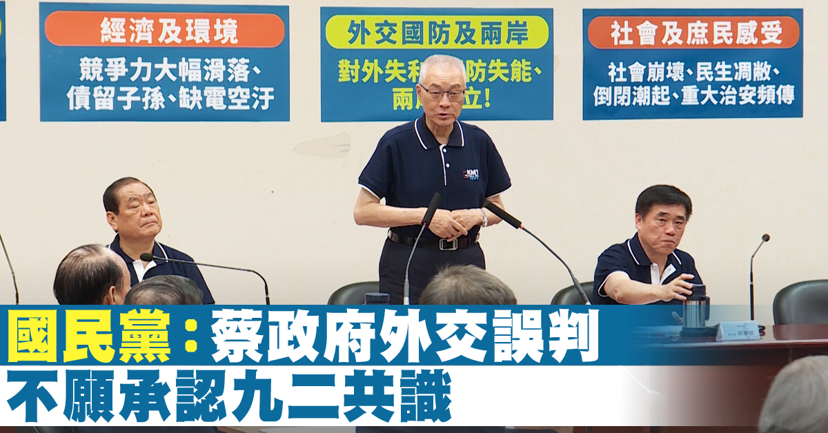 國民黨:蔡政府外交誤判 不願承認九二共識