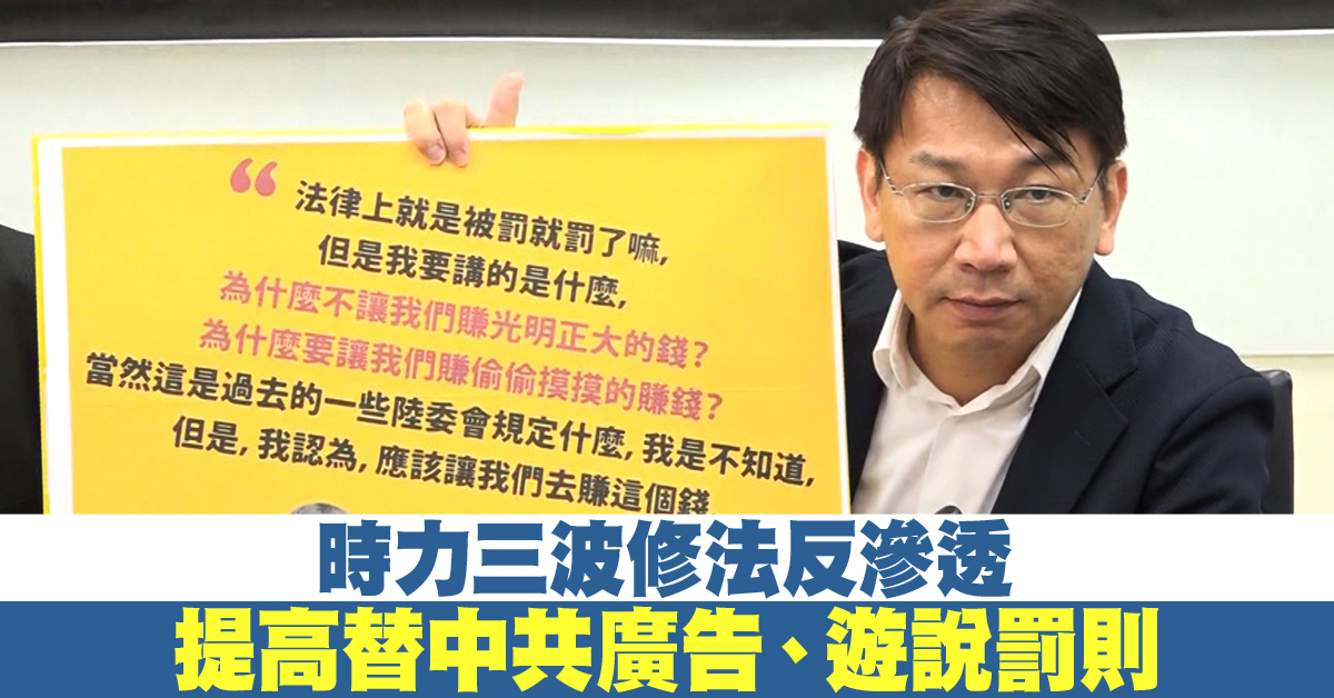 時力三波修法反滲透 提高替中共廣告、遊說罰則