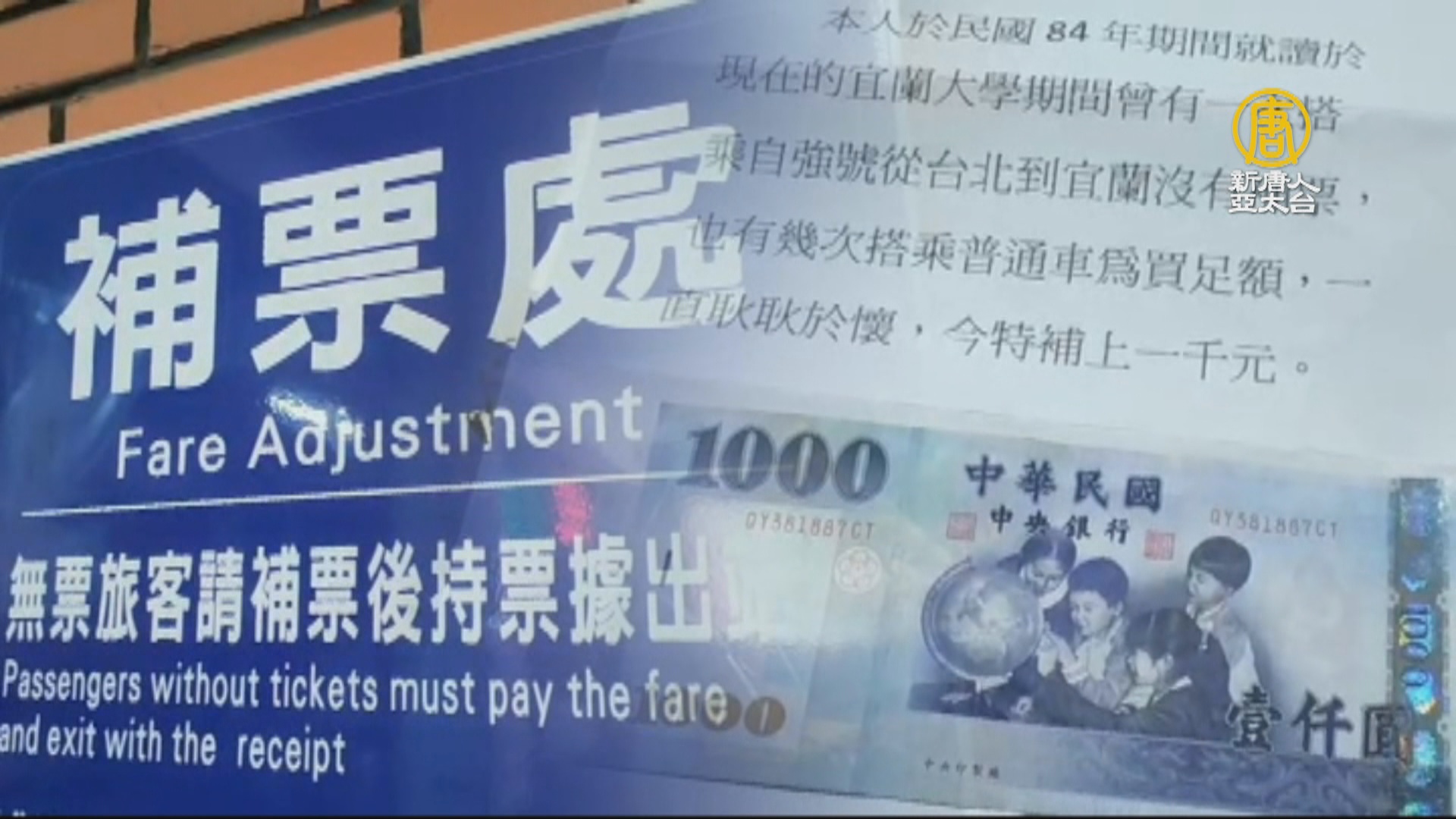 【新唐人亞太台 2019 年 05 月 22 日訊】宜蘭火車站收到一封寄給站長的信,打開一看,原來是1995年,一名就讀宜蘭大學的學生,從台北坐車到宜蘭沒買票,一直耿耿於懷,過了20幾年,決定還錢補票,寄了1千元回來,聊表心意。無獨有偶,過去也有人還錢10萬給台鐵,希望贖罪。