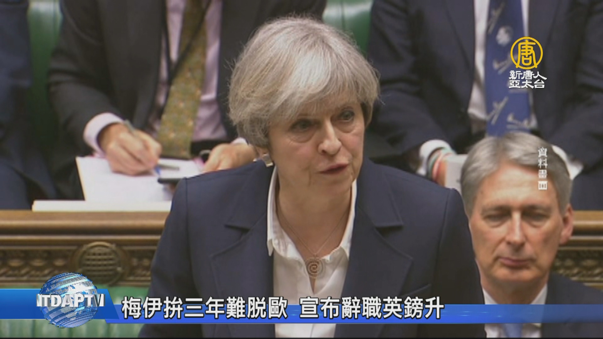 【新唐人亞太台 2019 年 05 月 24 日訊】英國首相梅伊今天(24日)宣布辭職。消息一出,英鎊兌美元應聲升值0.43%,報1英鎊兌1.2712美元。 2016 年7月,梅伊出任英國首相和保守黨黨魁,經歷約3年充滿危機的首相任期。今年1月以來,梅伊跟歐盟談好的脫歐協議草案,三度遭英國國會否決,近期嘗試與在野工黨,達成折衷版脫歐草案,也以失敗收場。但外界關注,梅伊宣布辭職的時間點,有些怪異,因為美國總統川普,預計6月3日出訪英國,還會參與諾曼地登陸75周年紀念日。而川普走後,英國執政黨保守黨,預定在7月20號國會夏季休會前,選出新黨魁,新黨魁將成為英國新首相。