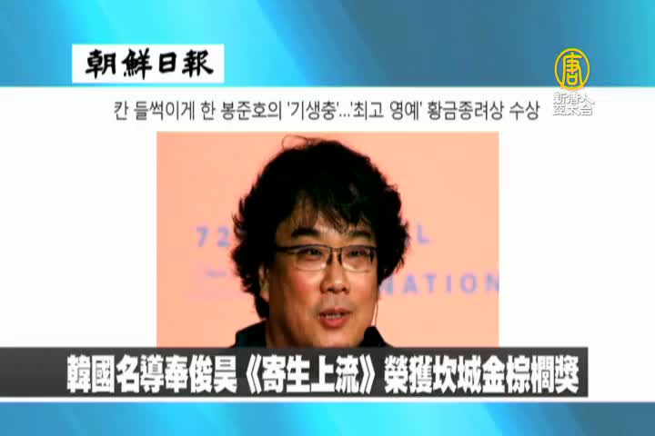 【新唐人亞太台 2019 年 05 月 27 日訊】來看到韓國朝鮮日報報導:韓國知名導演奉俊昊的《寄生上流》榮獲坎城影展金棕櫚獎。