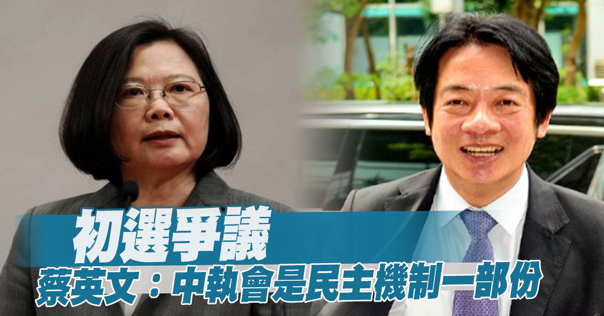 【新唐人亞太台 2019 年 05 月 30 日訊】民進黨中執會昨天通過新的「總統提名初選辦法」,但前行政院長賴清德認為,中執會通過了民進黨創黨以來不曾有過的惡例,粗暴的推翻已經公告生效的初選辦法,對此,總統蔡英文今天受訪時表示,中執會是按照黨章開的,中執委所做的決定,也是民主機制的一部分。