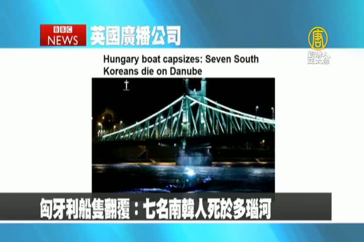 【新唐人亞太台 2019 年 05 月 31 日訊】繼續是英國廣播公司BBC的報導:匈牙利船隻翻覆,七名南韓人死於多瑙河。