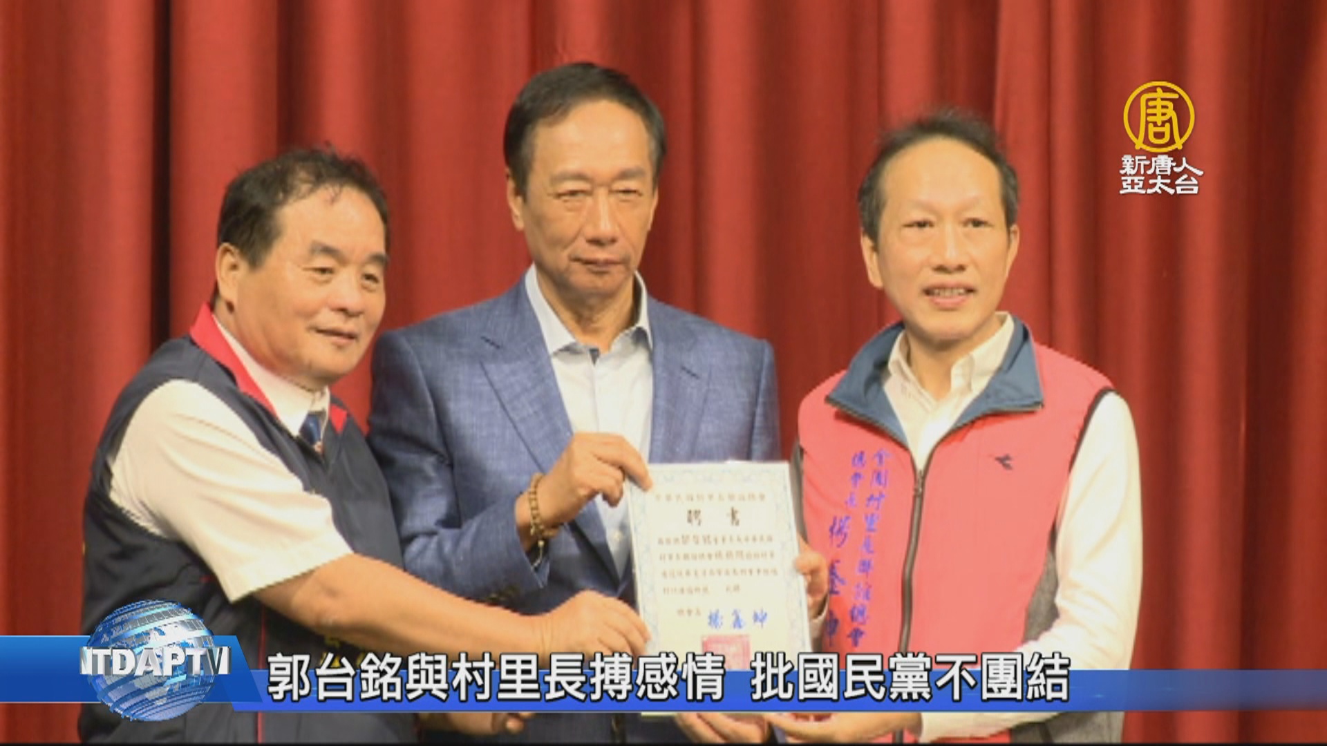 鴻海董事長郭台銘聯繫上全國村里長聯誼會,出席活動跟村里長直接面對面交流,並接下聯誼會總顧問的聘書,與基層村里長「搏感情」,為自己的初選選情加分,而最近就傳出,郭台銘團結了朱立倫、王金平、馬英九的人馬,組成「抗韓小組」要來取得總統大選門票。