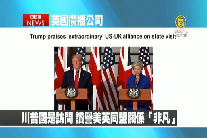 【新唐人亞太台 2019 年 06 月 05 日訊】繼續是英國廣播公司BBC的報導:川普國是訪問,讚譽美英同盟關係「非凡」。