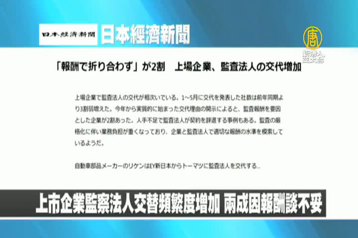 【新唐人亞太台 2019 年 06 月 05 日訊】來看到日本經濟新聞報導:日本上市企業監察法人交替頻繁度增加,兩成因報酬談不妥。
