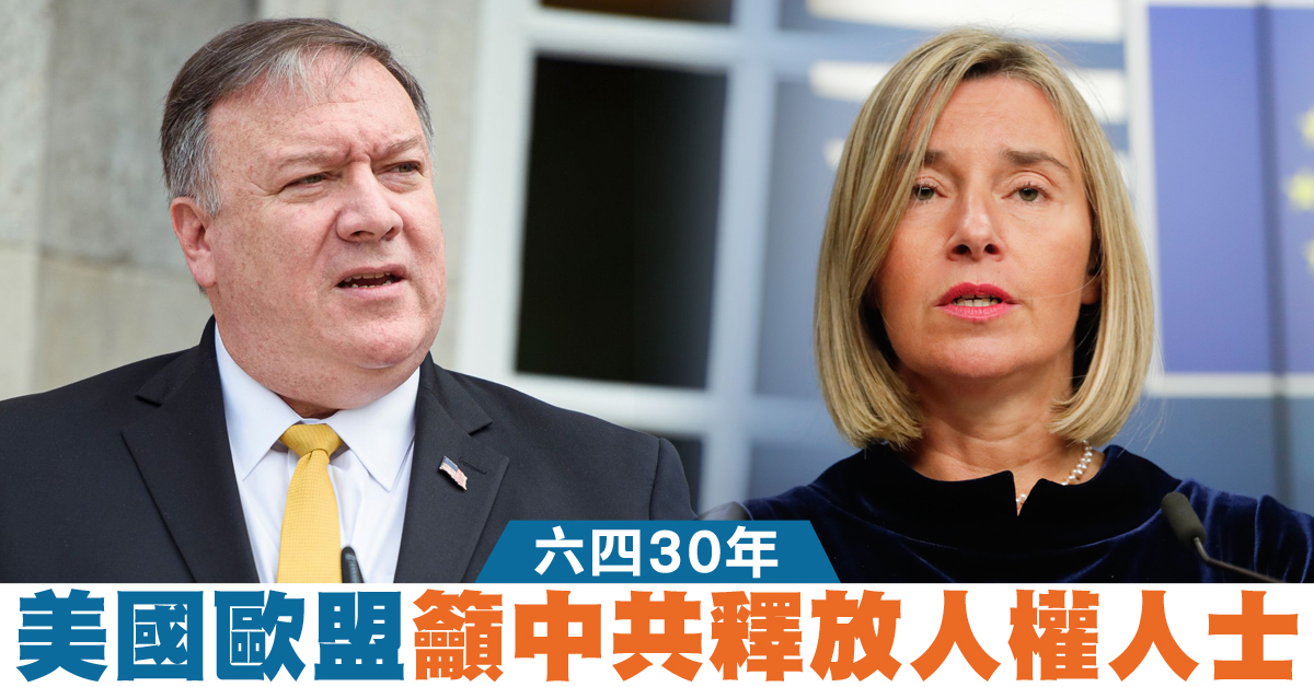 【新唐人亞太台 2019 年 06 月 05 日訊】六四30週年,美國國務卿蓬佩奧特別發表聲明,呼籲中共釋放因爭取權利和自由而遭到拘留的人。歐盟也發表聲明,要求中共當局應釋放支持民主的活動人士。歐盟還強調,與中國的關係中,人權一直是重要基礎,「未來也是如此」。