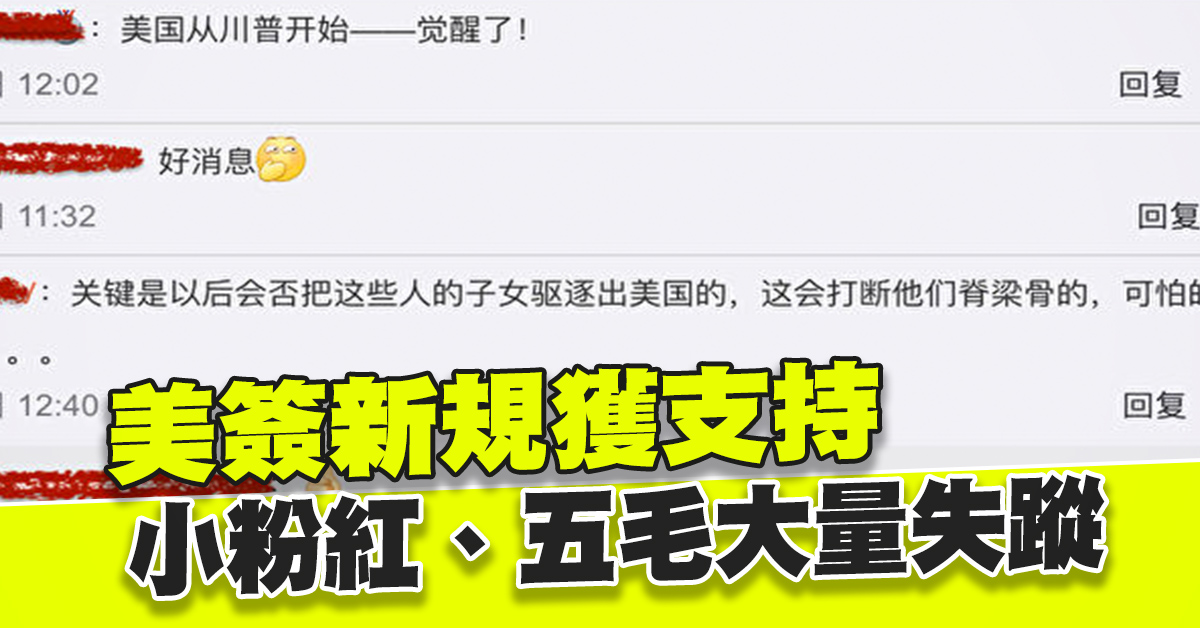 美簽新規獲支持 小粉紅、五毛大量失蹤