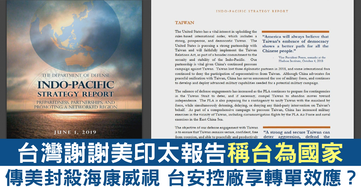 【新唐人亞太台 2019 年 06 月 08 日訊】美報告列台灣「國家」 韓媒頭版:美對中政策轉變