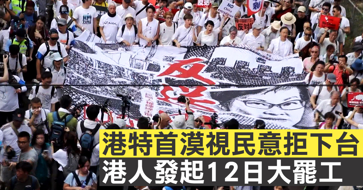港特首漠視民意拒下台 港人發起12日大罷工