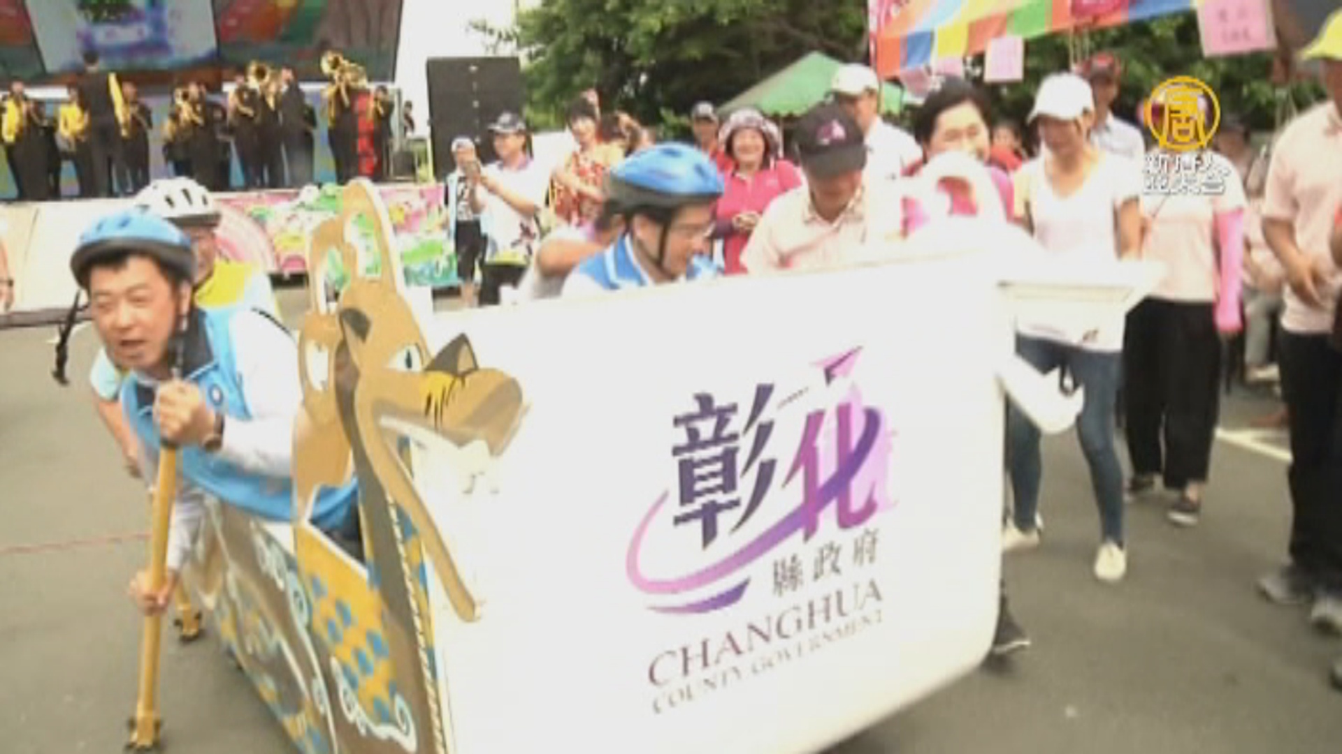 陸上龍舟賽,由彰化縣長王惠美鳴笛起跑,揭開序幕。