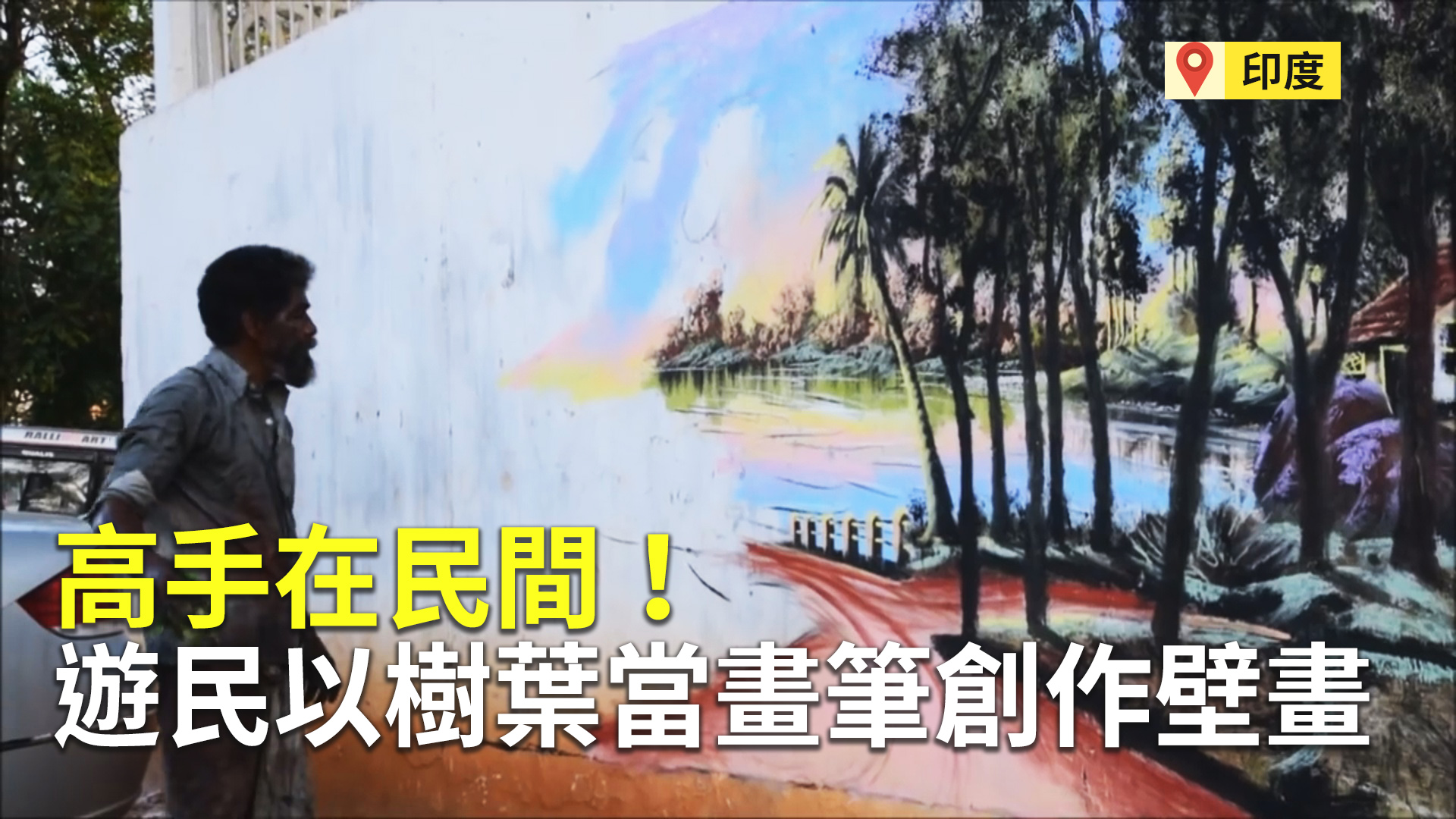 高手在民間!印度遊民以樹葉當畫筆創作壁畫