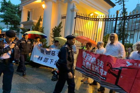 香港民主派冒雨到禮賓府 遭大批警察包圍和阻撓