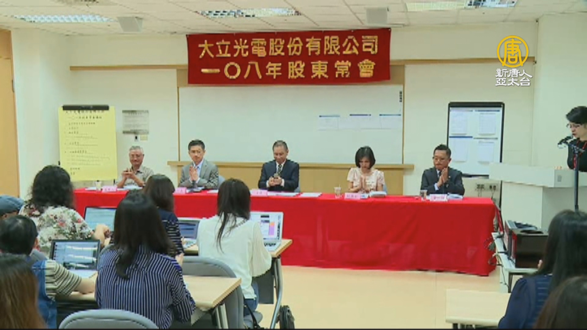 【新唐人亞太台 2019 年 06 月 12 日訊】再來看到,股王大立光(12日)今天召開股東會,通過配發現金股利68元,為歷史次高。對於中美貿易戰的衝擊,和下半年的訂單情況,大立光執行長林恩平維持一慣低調,說看不了這麼遠,但七月會比六月好。