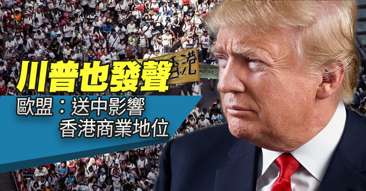 另外,歐盟發聲明表示,贊同香港市民對政府修改逃犯條例的關注,也已向香港政府轉達立場。認為這是一個敏感問題,對香港及歐盟等外國公民可能產生深遠影響,也可能波及企業對香港商業地位的信心。