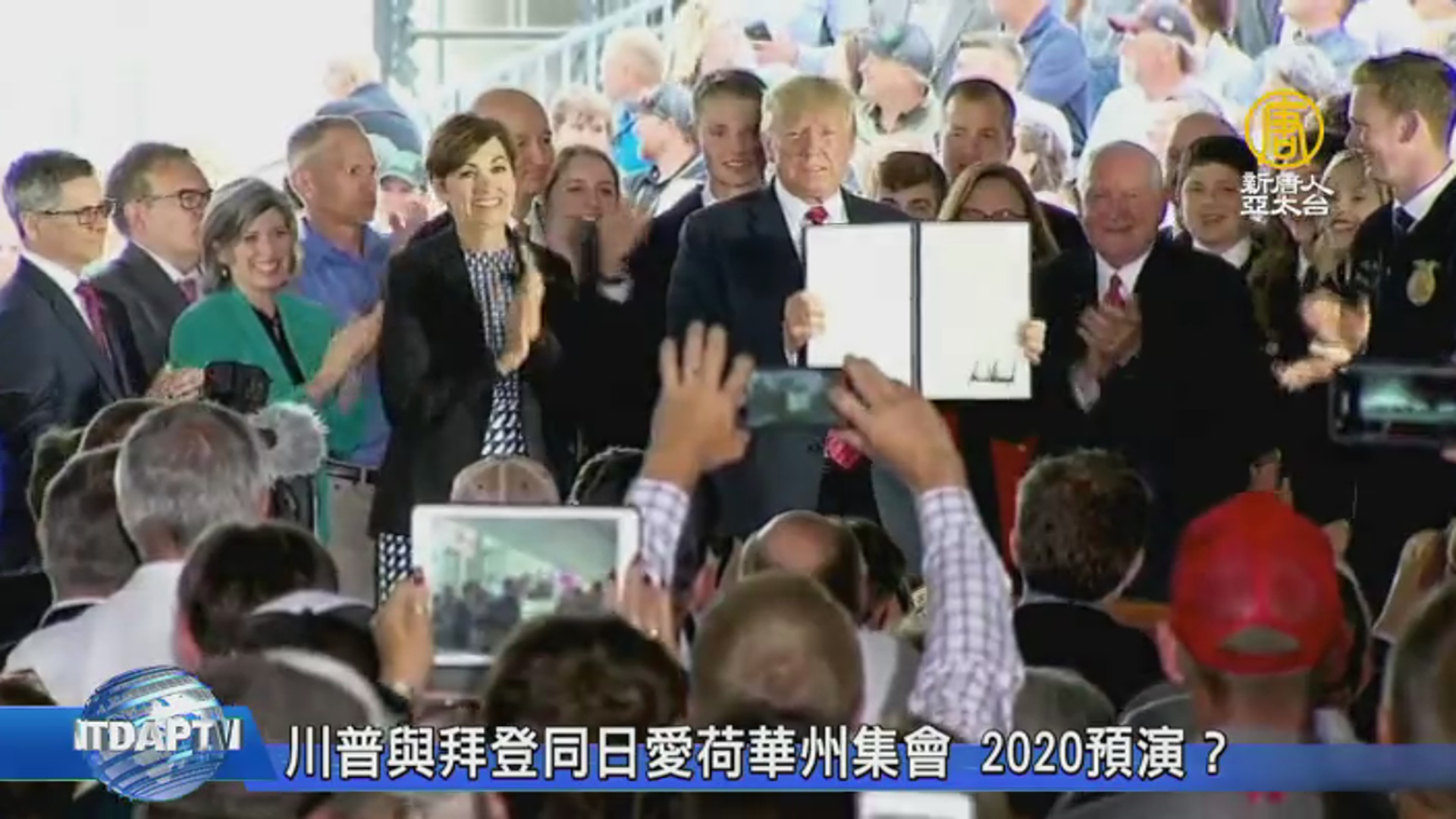 【新唐人亞太台 2019 年 06 月 13 日訊】歡迎回來。美國總統川普,週二到愛荷華州就再生能源發表演講,不過,同一天,民主黨總統參選人拜登,也在愛荷華州拉票,兩人是隔空打起口水戰,要搶藍領選票。