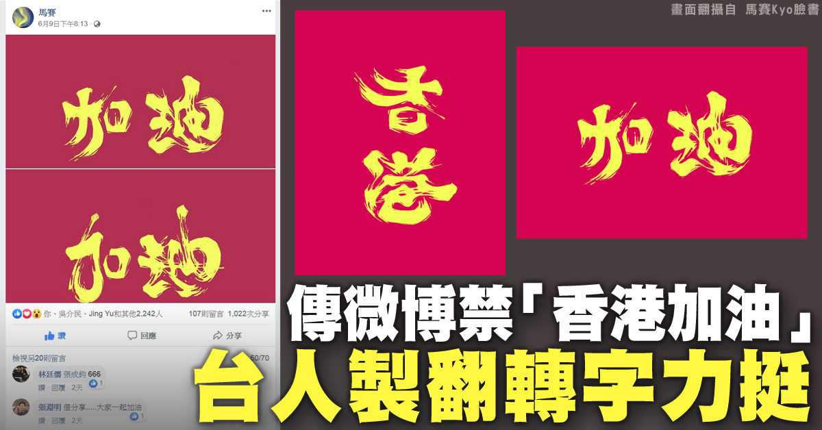 傳微博禁「香港加油」 台人製翻轉字力挺|台灣速速看