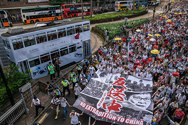 6月9日,香港逾百萬人上街大遊行「反送中」,即反對港府欲對「引渡條例」立法。 (Anthony Kwan/Getty Images)