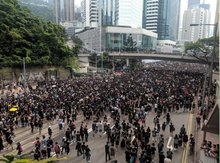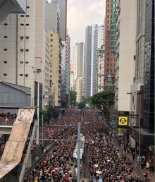 一,今日香港黑色大遊行,甫開始已逼爆六條行車線,多個地鐵站要作出人流管制,市民未能在維園起點出發,結果市民要從炮台山、北角、金鐘、中環等地落車,再步行至原來的起點;此外,遊行人士及後更塞爆駱克道、告示打道、夏慤道等,遊行人數之巨,是九七年以來前所未見!