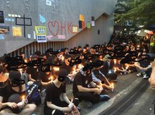 【21:49】 在太古廣場外,有市民響應大專學界呼籲,默哀悼念墮斃的示威者。學界代表悼辭表示香港人會永遠懷念烈士,市民爭取自由之心永不死。默哀後各大專代表上前獻花,並呼籲星期一三罷。