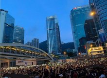 「逾百萬反送中大遊行」入夜九點後灣仔金鐘一帶仍然聚集大批遊行人士星光一片十分美麗