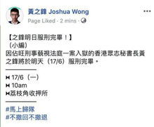 【22:26】香港眾志秘書長黃之鋒將於明早獲釋。