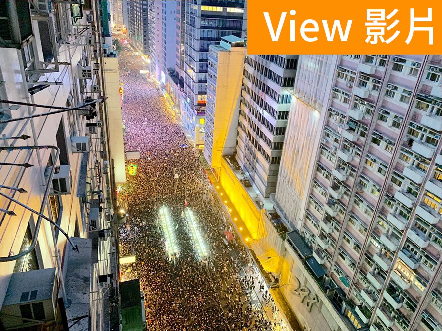「150萬港人遊行反送中」入夜後人流仍然擠爆灣仔銅鑼灣非常壯觀(高空夜覽)