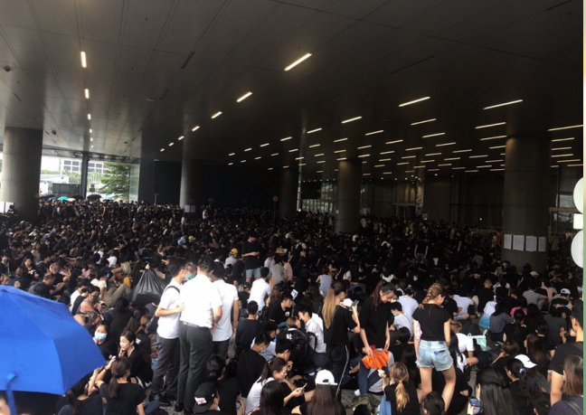 【18:00】超過 1000 名示威者於特首辦外坐下,高呼「放人」,亦有示威者呼籲群眾到禮賓府集會。