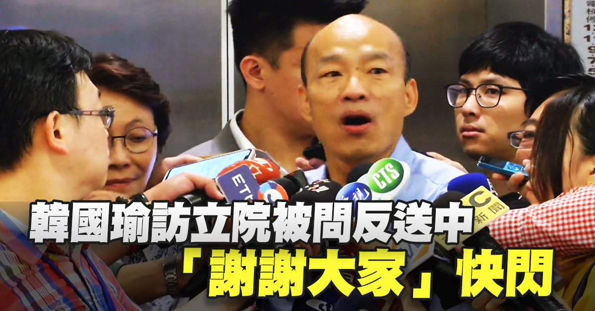 【新唐人亞太台 2019 年 06 月 17 日訊】香港「反送中」運動全世界關注,高雄市長韓國瑜今天在立法院拜會國民黨團及高雄市區域立委,被媒體問到怎麼看昨天香港200 萬人上街「反送中」時,韓國瑜只表示,「好,謝謝大家」後就快閃,留下一片錯愕。