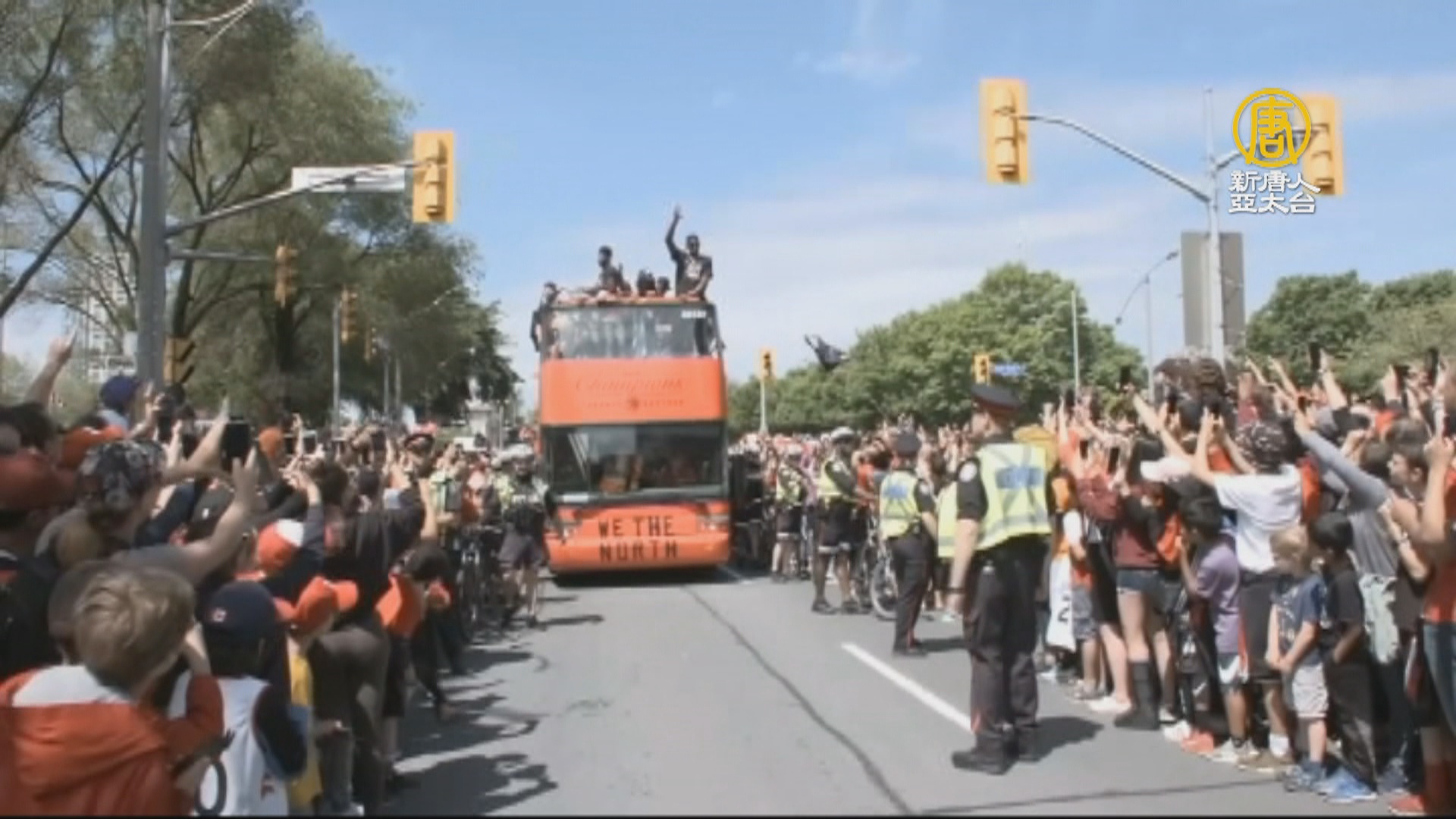 記者 朱峰:「6月17日,多倫多市中心舉行了慶祝暴龍隊奪冠NBA的盛大遊行。」