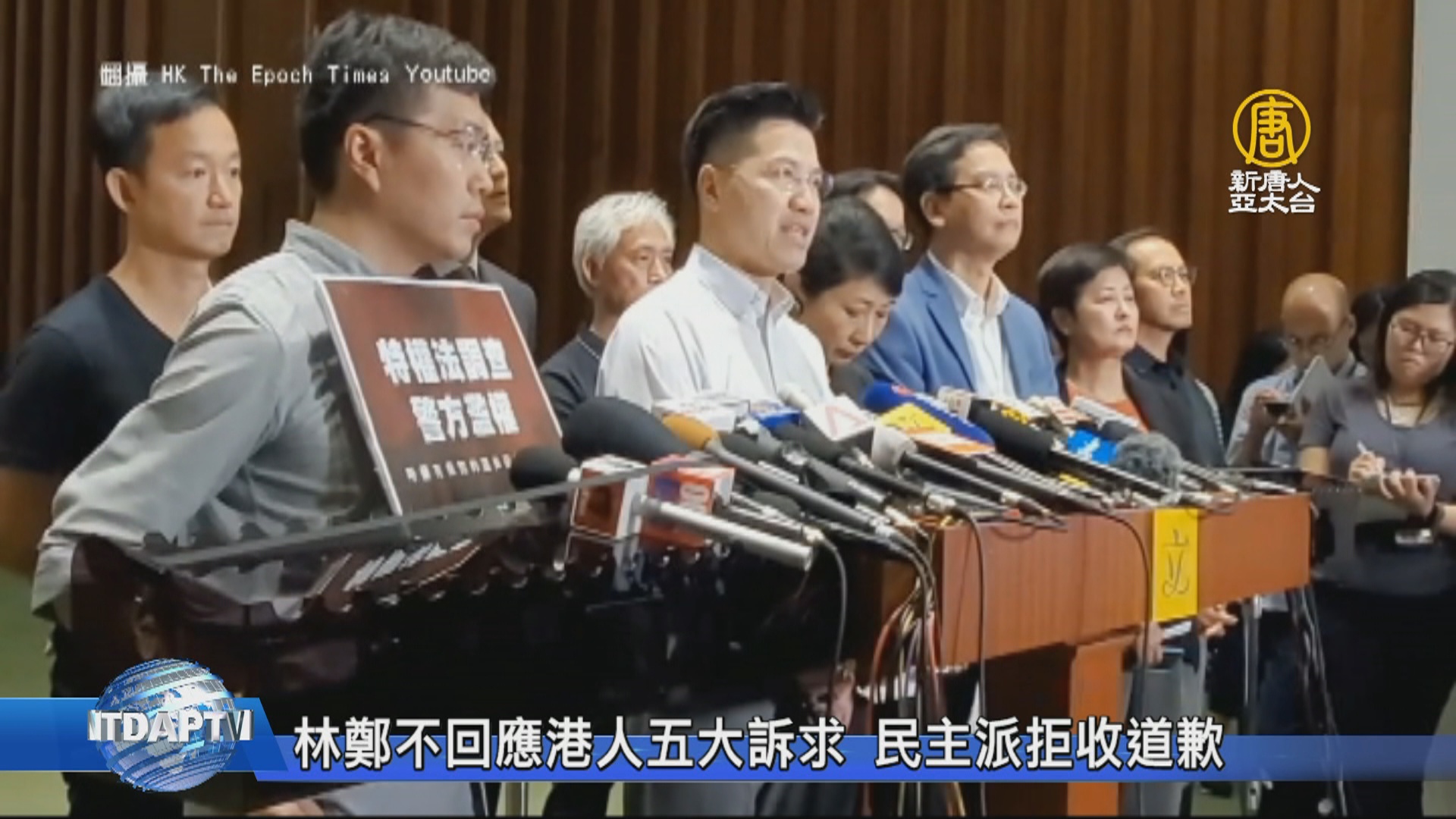【新唐人亞太台 2019 年 06 月 18 日訊】好,香港特首林鄭月娥,今天(18日)下午,開記者會向香港市民道歉。不過對於兩百萬港人的訴求,並沒有回應。包含撤回修例、特首下台、暴力鎮壓究責、撤銷暴動定義、釋放被捕者不作檢控等,都避重就輕帶過。對此民主派立法會議員表明,拒絕接受林鄭月娥道歉。