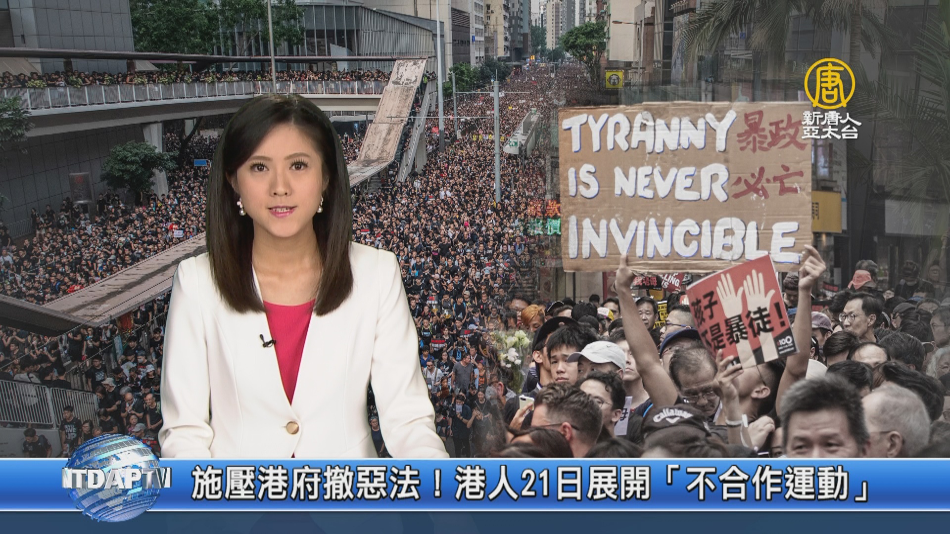 【新唐人亞太台 2019 年 06 月 18 日訊】香港日前爆發「反送中」示威遊行,儘管事後港府宣布,暫停修訂《逃犯條例》,特首林鄭月娥也在今天(18日)下午4點,召開記者會向市民道歉,但香港多個團體今天發出聯合聲明表示,向林鄭月娥提出,撤回修訂《逃犯條例》草案、追究警方濫用暴力等4項訴求,要求港府回復,訂下「最後期限」20日下午5點,否則將在周五(21日)早上7點,展開「全港不合作運動」,將以罷工、罷課等行動,施壓港府。