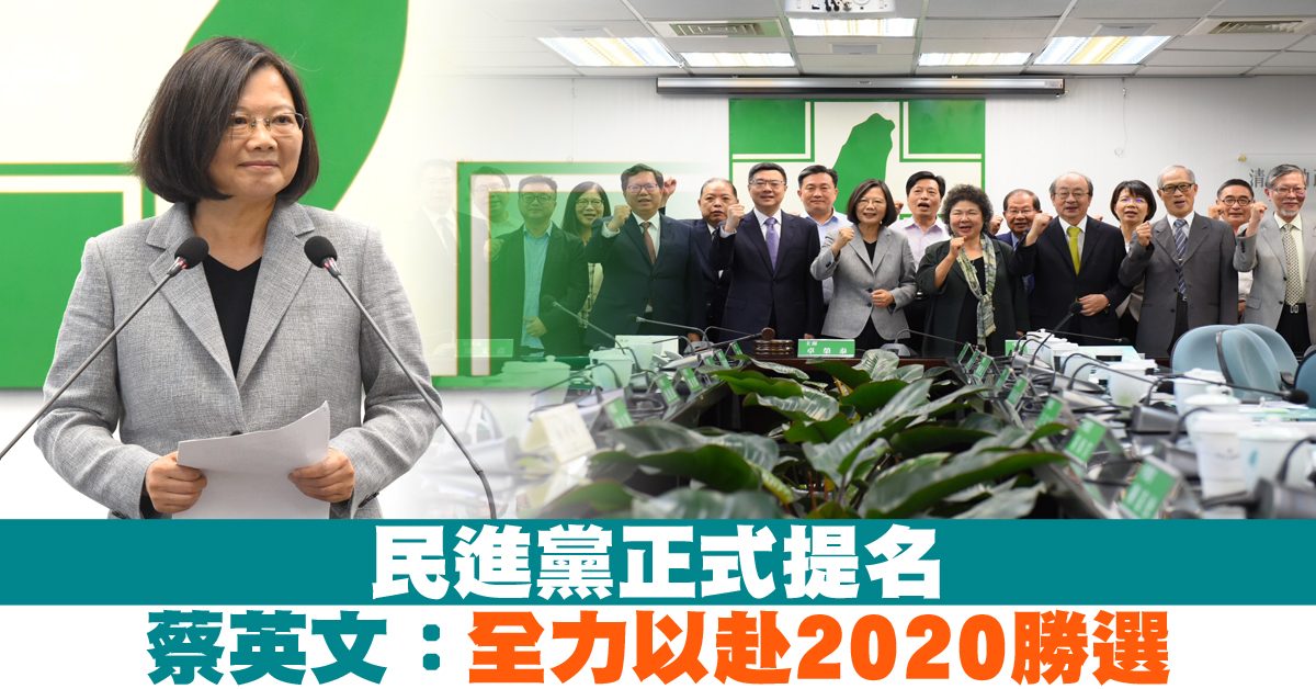 蔡英文正式獲民進黨提名,爭取2020總統連任。蔡英文逐一向黨內公職致意,也感謝初選過程,賴清德激勵黨內士氣。蔡英文表示,明年大選不僅是民進黨前所未有的挑戰,同時也是台灣的挑戰。