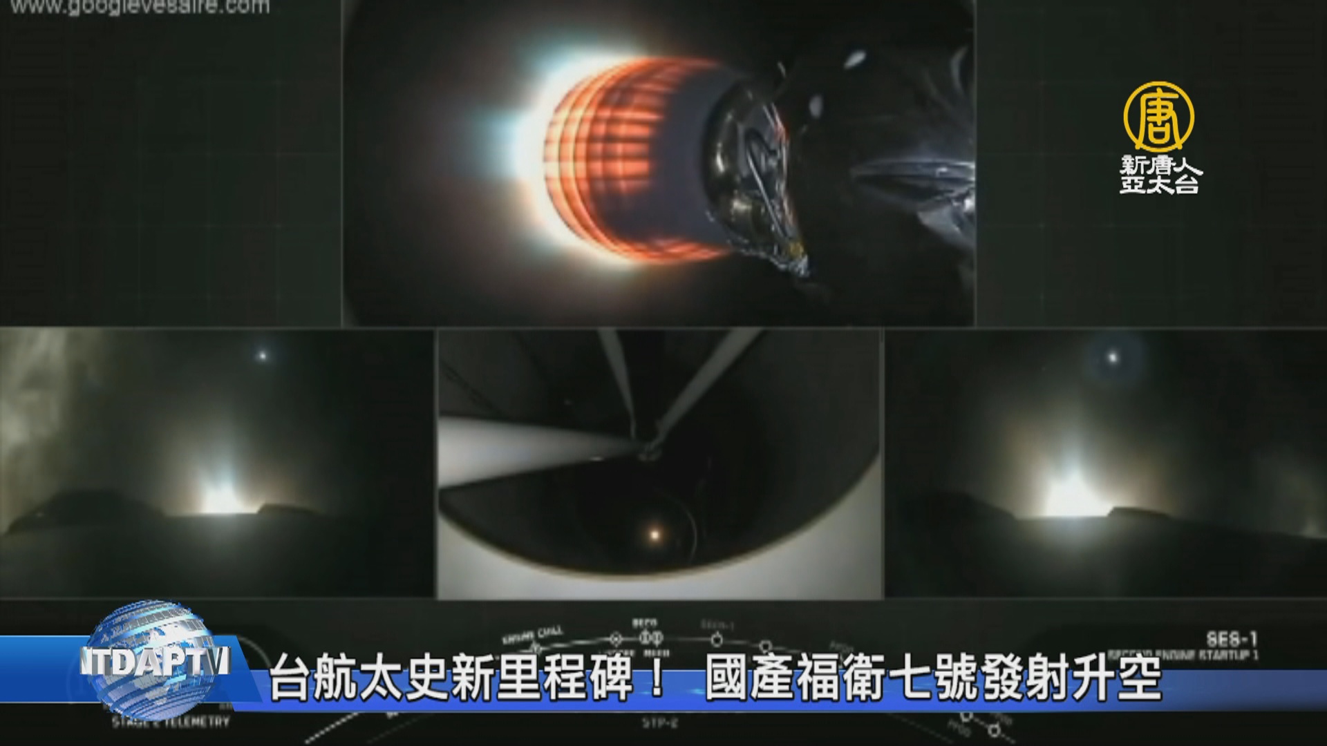 【新唐人亞太台 2019 年 06 月 25 日訊】新聞頭條,馬上帶您看到,台灣航太史邁入新的里程碑!台灣自主製造的福爾摩沙衛星七號,搭乘SpaceX獵鷹重型火箭,在台灣時間(6月25日)下午14時30分,順利在美國甘迺迪太空中心發射升空。這是台美近10年來最大的科技合作計畫,總統蔡英文、AIT處長酈英傑,也都到新竹太空中心觀看發射轉播,酈英傑更稱讚,台灣的尖端技術已延伸到地球之外!