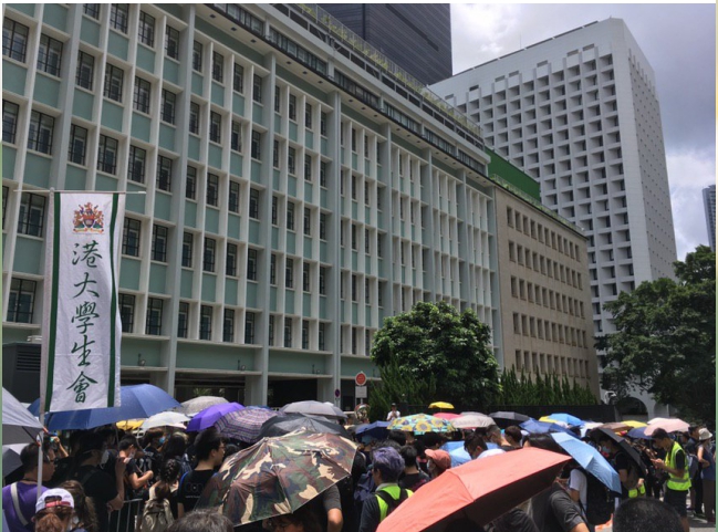 【新唐人亞太台 2019 年 06 月 27 日訊】今天(27日),有香港網民發起包圍律政中心的行動,抗議律政司司長鄭若驊,要求撤回修訂《逃犯條例》、不檢控6.12的示威者,以及取消對6.12所謂「暴動」的定性,還設下期限,要求律政司長要在今晚9點前,回應訴求。晚間8點多,諾貝爾和平獎得獎組織創辦人Rebecca Johnson現身律政中心,感謝示威者為人權民主努力。