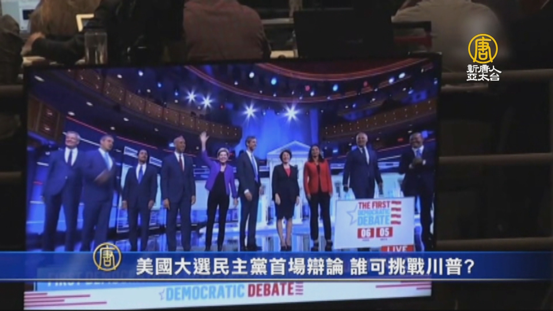 【新唐人亞太台 2019 年 06 月 28 日訊】美國2020總統大選,民主黨黨內初選首場辯論正在邁阿密進行,周三晚10名參選人完成了第一輪答辯。誰可能成為川普挑戰者呢?來看報導。