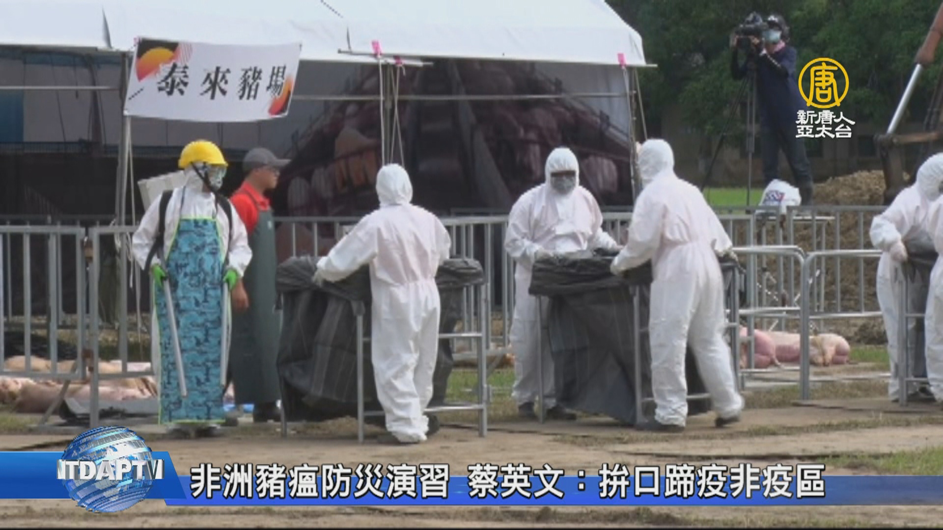 【新唐人亞太台 2019 年 06 月 28 日訊】歡迎回來,總統蔡英文,今天下午由農委會主委陳吉仲陪同,到臺南市視察「全國非洲豬瘟緊急防疫模擬演練」,蔡英文表示,防疫視同作戰,現在非洲豬瘟疫情仍在蔓延,絕對不能鬆懈,一定要持續守護臺灣豬。