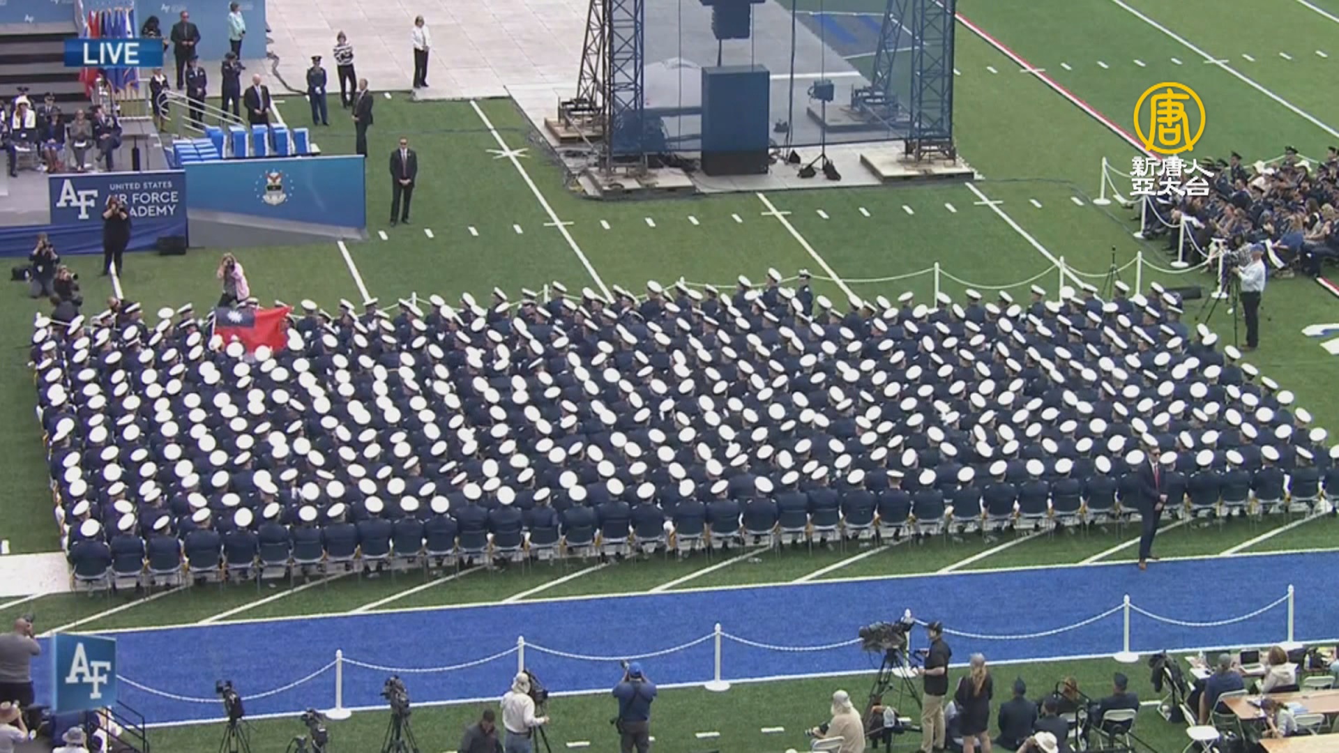 【新唐人亞太台 2019 年 06 月 28 日訊】蔡英文總統參加三軍六校聯合畢業典禮,親自替畢業生代表掛階,而今年一千三百七十六名畢業生中,最受矚目的,就是上個月在美國空軍官校畢業典禮上揮舞國旗的劉欣學,今天受訪時他說,能在這麼多人面前揮舞中華民國國旗、讓世界看見台灣,感到很驕傲也很開心。