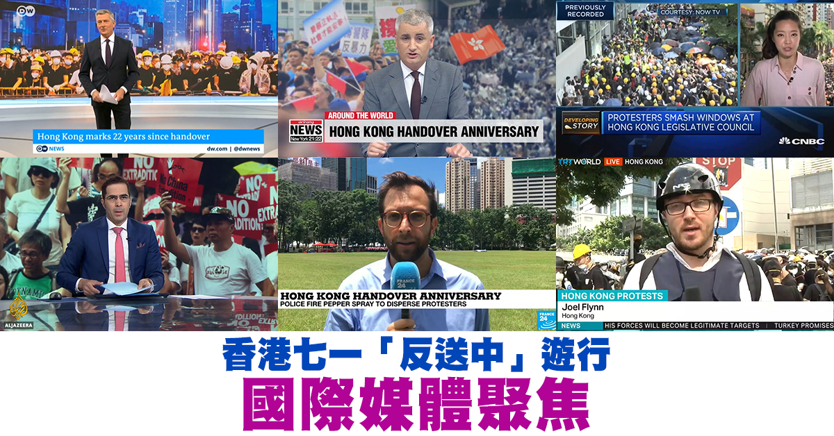 週一,香港七一大遊行,全球國際媒體關注。多家媒體記者親赴香港,進行報導。