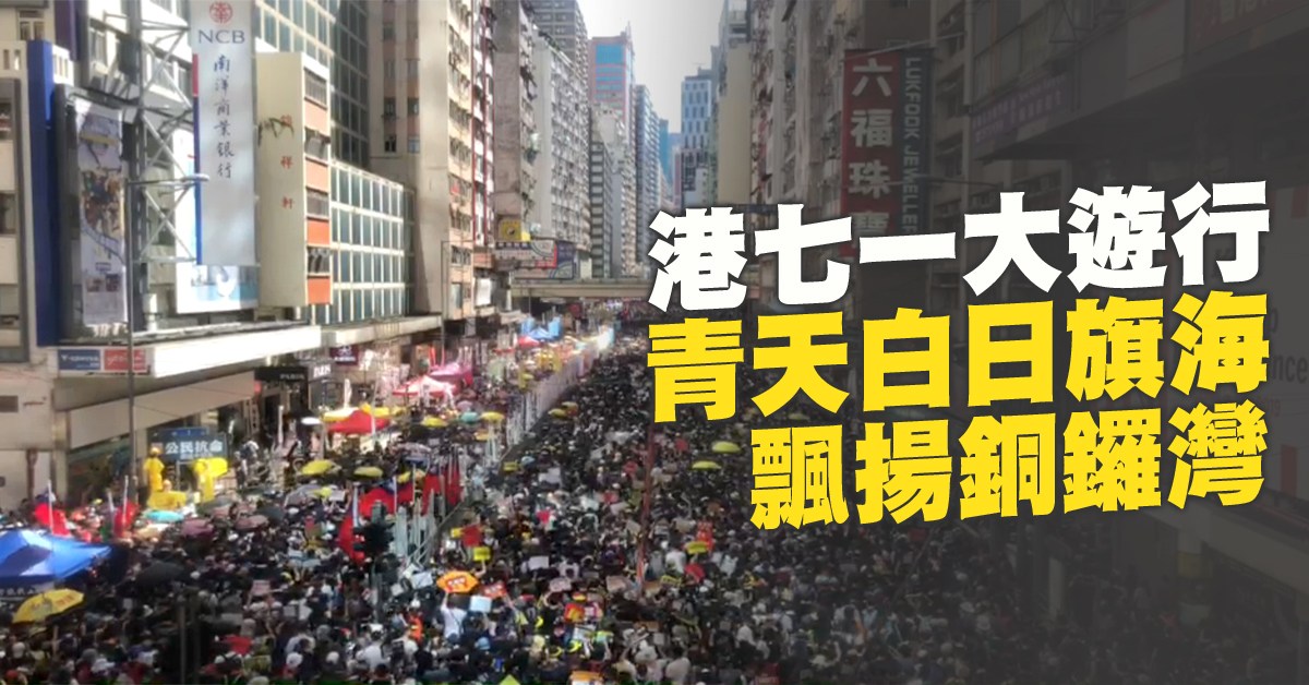 港七一大遊行 青天白日旗海飄揚銅鑼灣