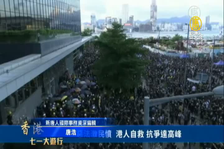 【新唐人亞太台 2019 年 07 月 01 日訊】好的繼續看到,今天香港舉行七一大遊行,不過有一批人,是聚集在立法會外,並用硬物撞擊立法會的玻璃門,試圖要進入內部。不過就有香港網友po文表示,有人認出了立法會門外的這幾十人,跟在新記跟尖東 參加撐警集會的那群黑幫人士,是同一群人,網友就呼籲大家不要被利用,新唐人紐約總台的七一大遊行直播節目,也有評論員即時分析。