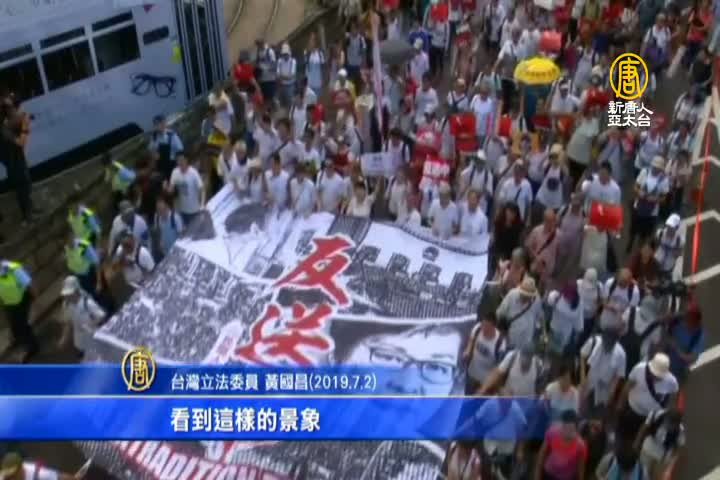 台灣立法委員 黃國昌(2019.7.2):「不管在任何一個角落的中國人民,看到這樣的景象,他們都會問一個最根本的問題:如果香港的人民,都已經這麼勇敢站出來,爭取民主自由、爭取他們自己的未來的話,那目前還生活在中國共產黨高壓統治的我們,什麼時候才能夠站起來,爭取自己的自由?」