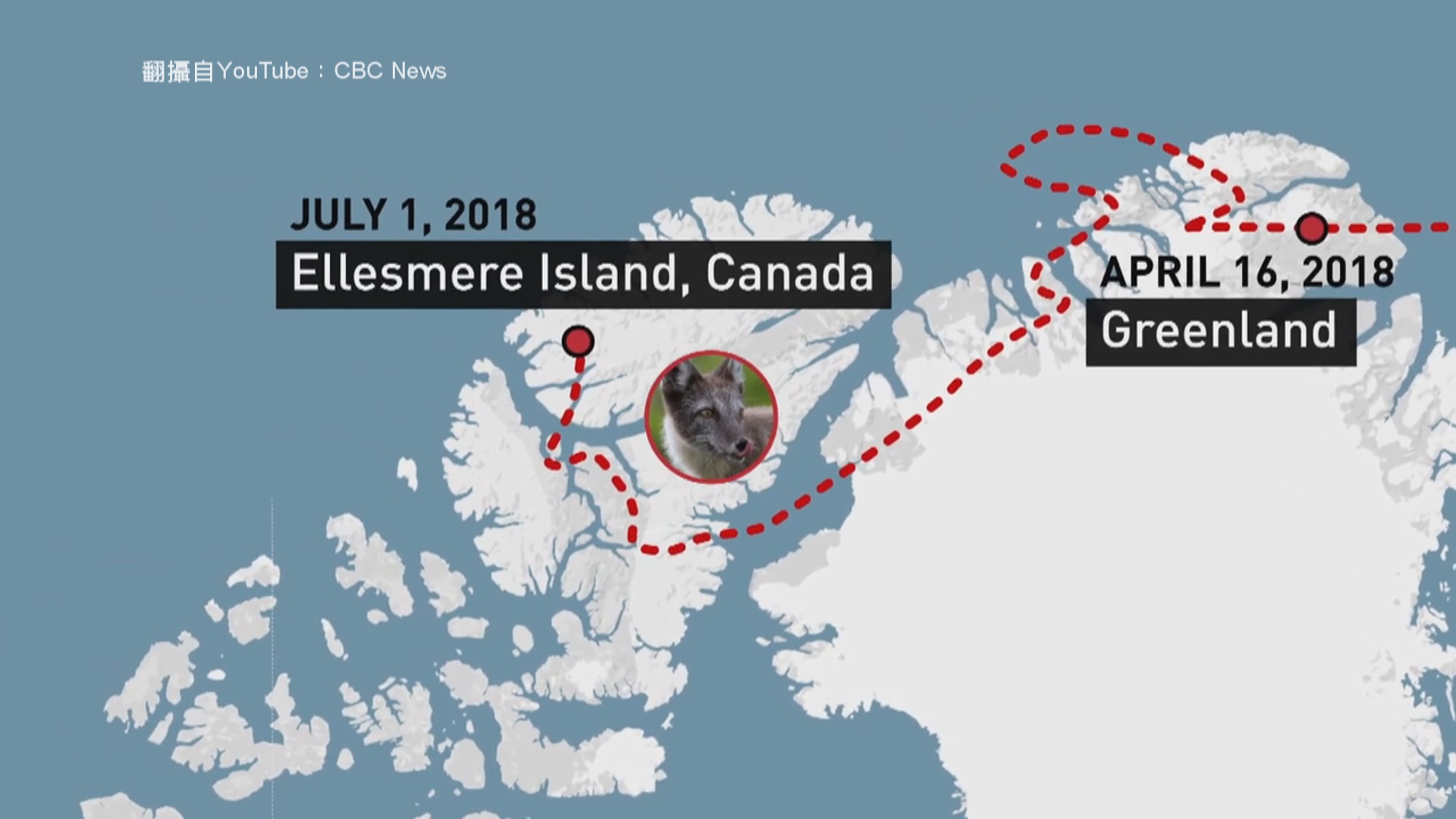 【新唐人亞太台 2019 年 07 月 05 日訊】挪威極地研究所科學家為一隻不到一歲的雌北極狐 裝上GPS追蹤裝置,沒想到牠在76天內穿越了3506公里,從挪威斯瓦爾巴群島跑到加拿大的埃爾斯米爾島,等於每天平均要跑46公里多,比跑完一場馬拉松42公里還要多。