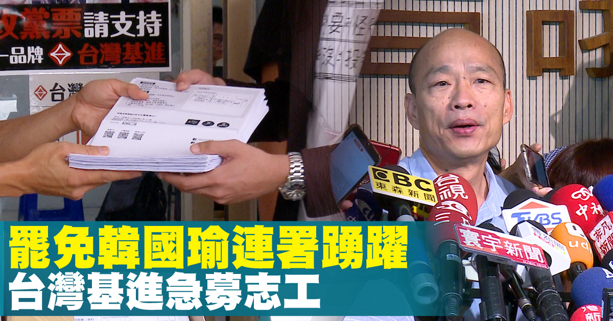 罷免韓國瑜連署踴躍 台灣基進急募志工