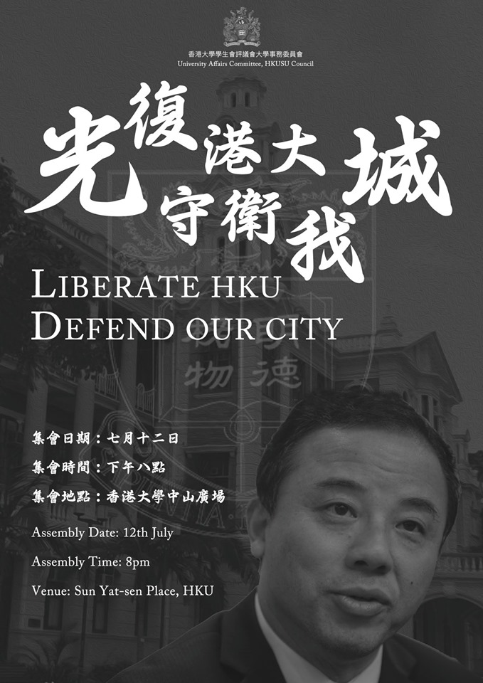 香港反送中事件,港大校長張翔先前針對衝擊立法會,認為是暴動行為,引起港大學生不滿。學生號召12號晚間,在港大中山廣場集會,要求校長收回冷血聲明。而在星期三下午,數十名學生也當面向校長遞交2千人的連署。