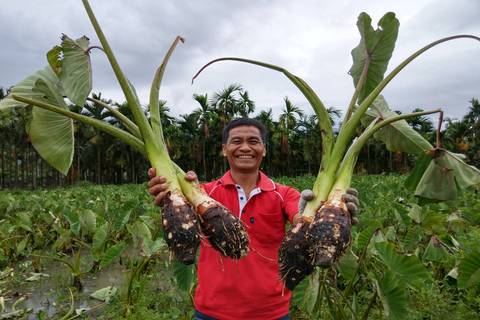 簡偉良種的第一條有產銷履歷的芋頭在屏東高樹鄉問世。(農糧署南區分署提供)