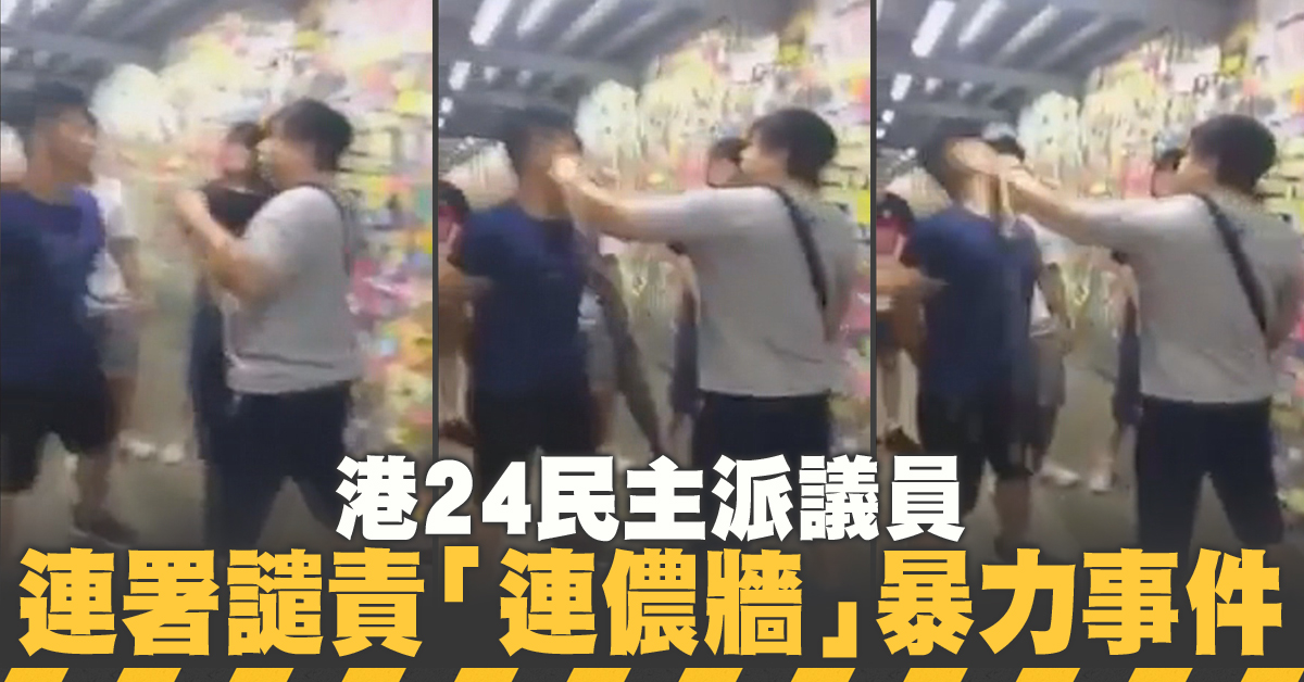 24名民主派立法會議員連署譴責疑似組織社團人士大舉包圍辱罵、恐嚇、襲擊於連儂牆一帶的年輕人,情況令人憤怒髮指。要求警方從速嚴正執法。