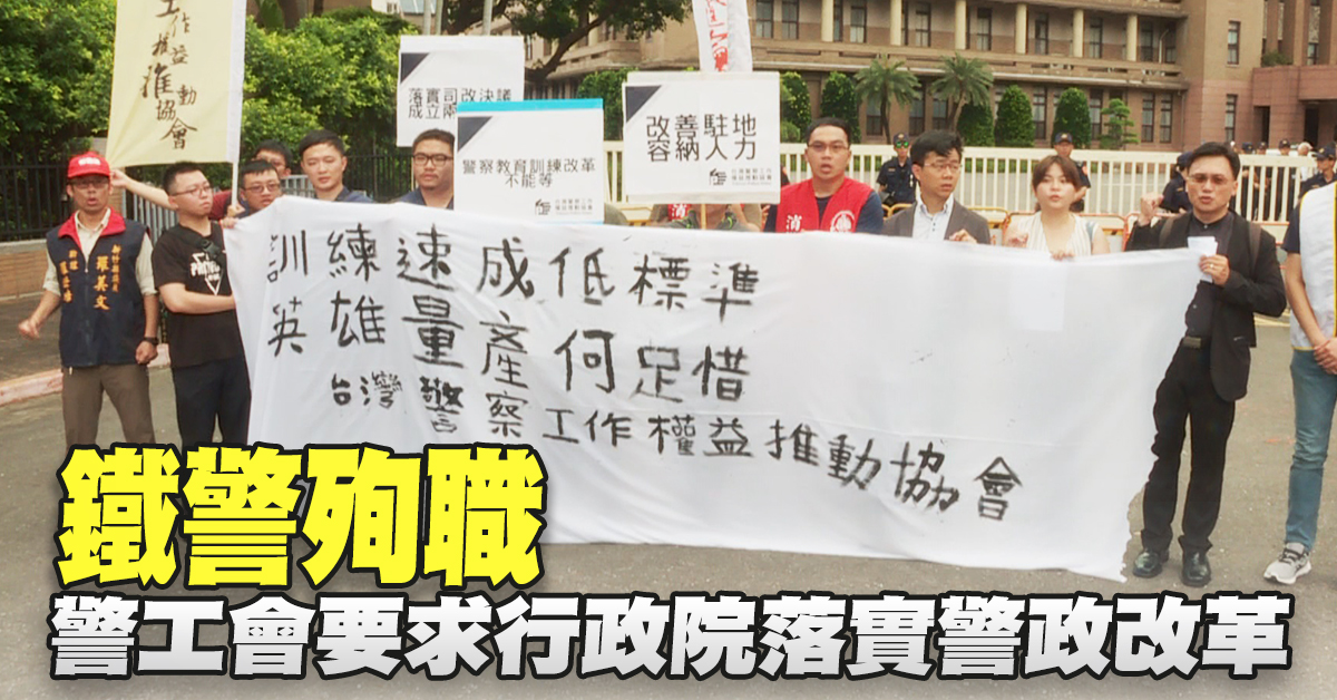 2019-07-11 12:57:00嘉義鐵路警察李承翰殉職案引起社會關注,台灣警工會成員上午前往行政院大門口,舉辦記者會,希望政府能承諾警察訓練的改革,不要讓更多員警因為制度,被迫走上殉職的路。
