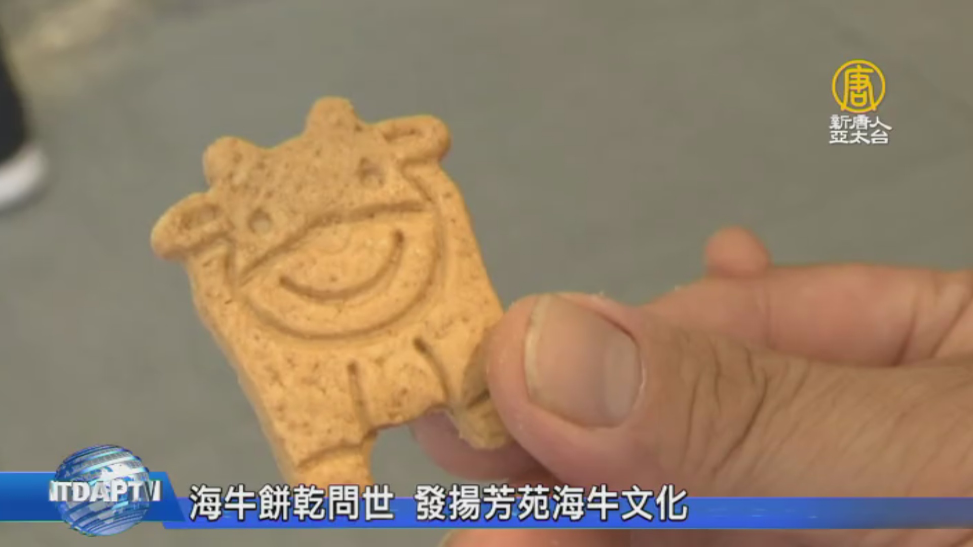 【新唐人亞太台 2019 年 07 月 11 日訊】世界唯一僅存,9隻現役還在彰化芳苑外海濕地,下海採蚵的「彰化縣國寶級海牛」,其中,唯一一隻被認養的海牛,可愛模樣被做成餅乾板模,原來是認養人發起,結合餅乾公司,製作出三款Q版的海牛餅乾,要行銷芳苑獨特的海牛文化。