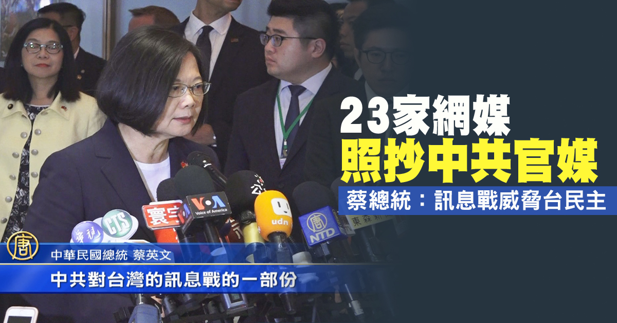 23家網媒照抄中官媒 蔡總統:訊息戰威脅台民主